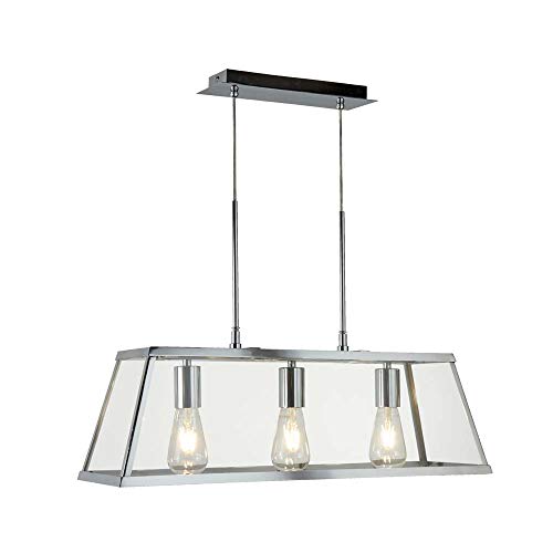 Create contemporary appeal for your decor with this 3 light lantern bar in chrome. The 3 lights are fully exposed to the clear glass of the lantern bar that is finished with a chrome trim. The contemporary design nods towards an on-trend industrial style.