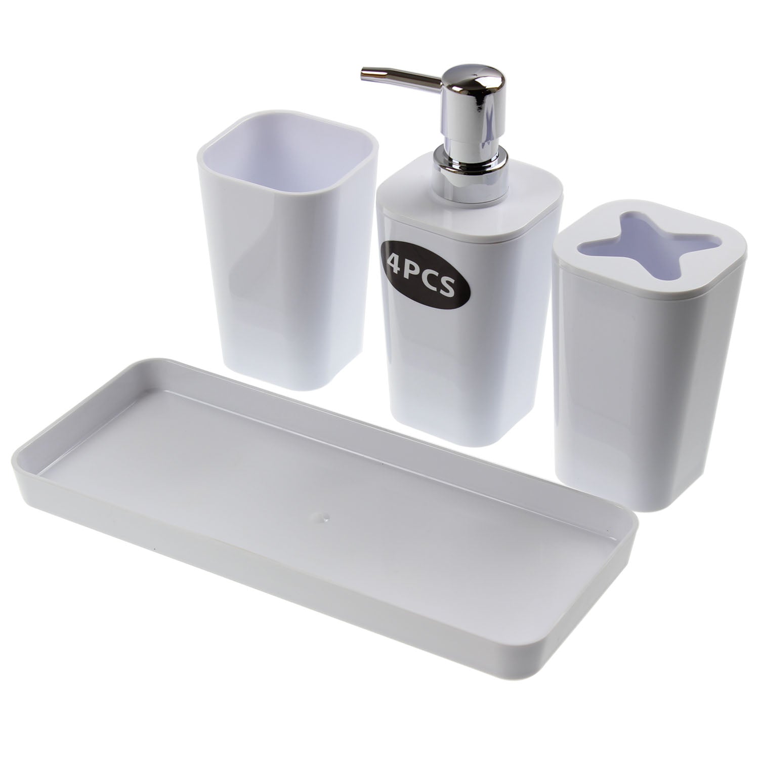 - Set includes a Toothbrush Holder, Lotion Dispenser, Tumbler