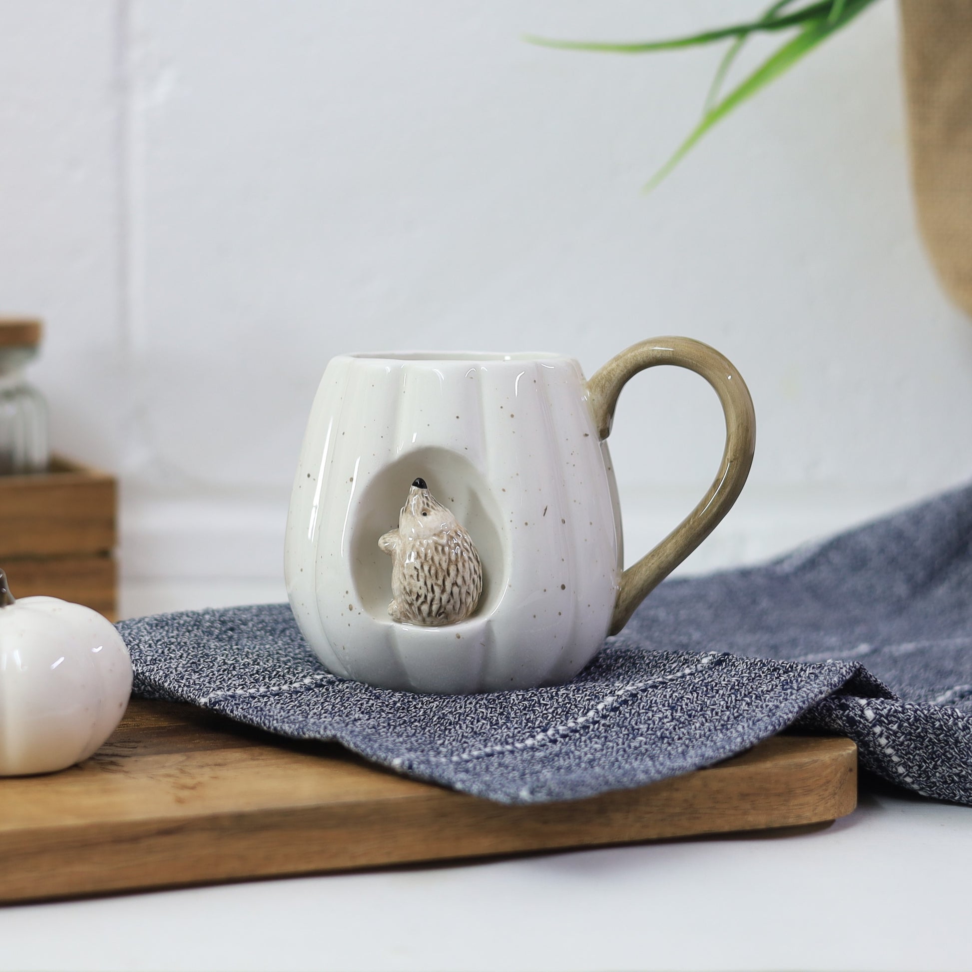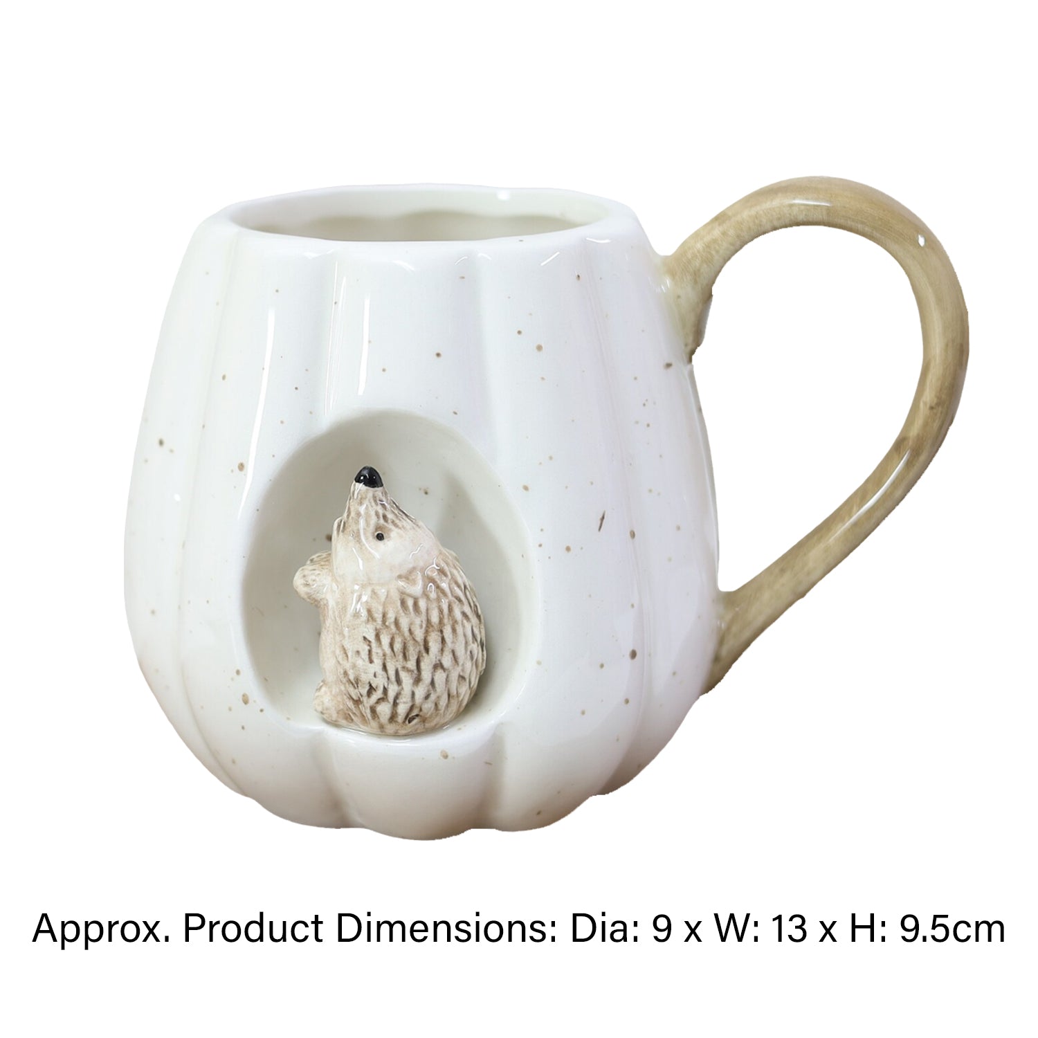 White Ceramic Autumn Decor Pumpkin Shaped Mug With 3D Hedgehog