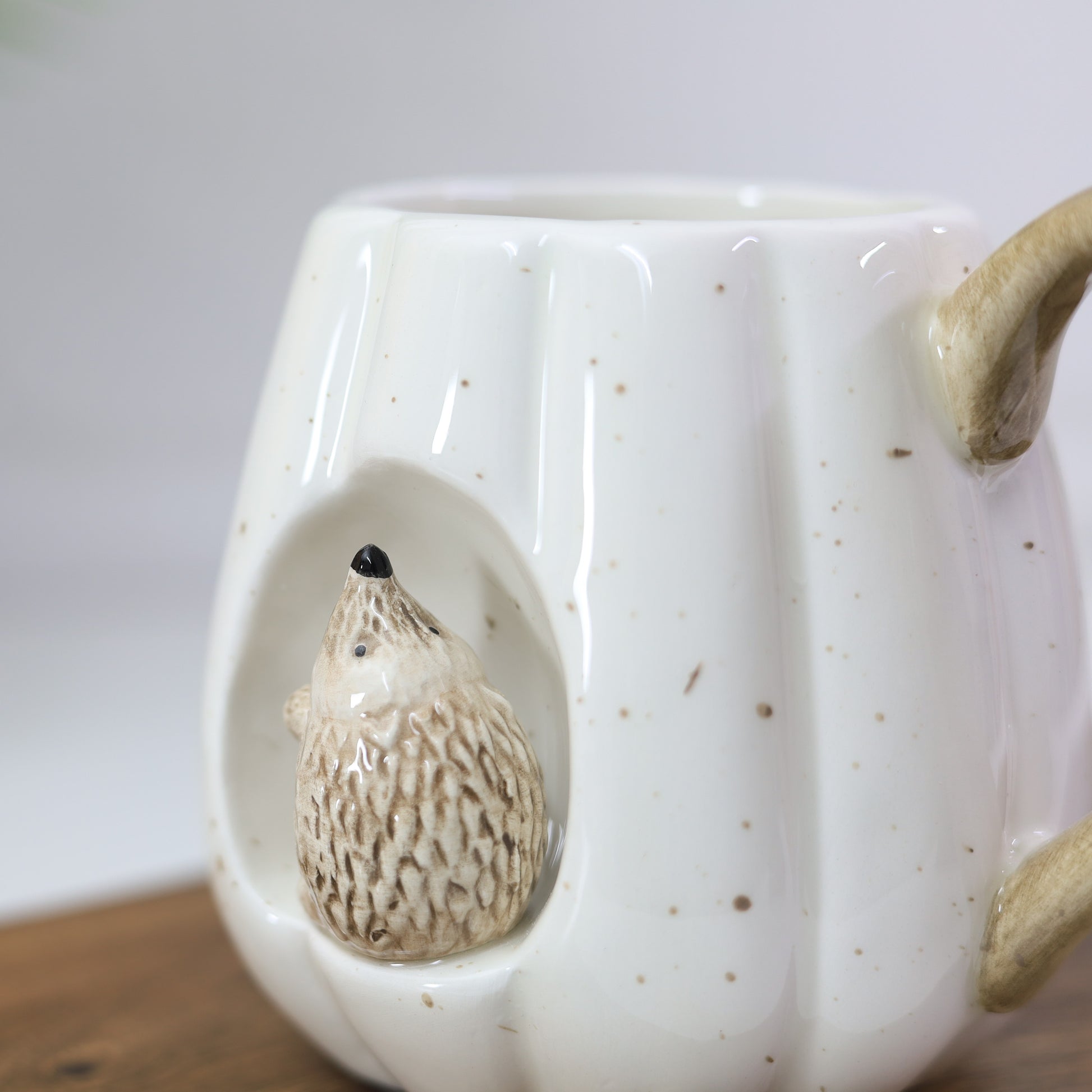 Sip your morning coffee in style with this charming white ceramic mug featuring a delightful 3D hedgehog design. With a smooth, glazed finish and a wood-like handle, this mug is perfect for enjoying your favourite beverages. Whether used daily or displayed as a decorative piece, it adds a touch of rustic countryside charm to any kitchen.