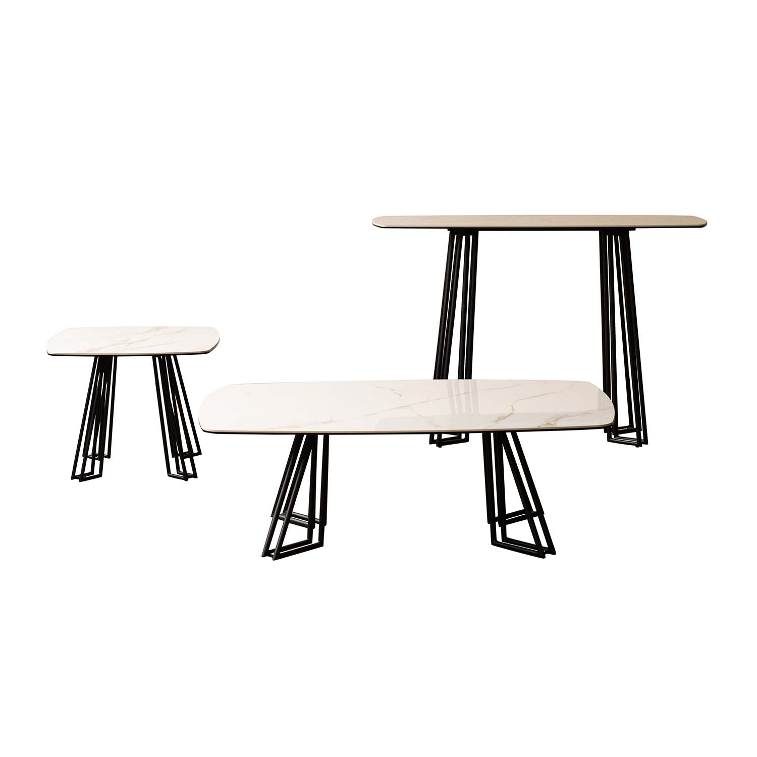 White Ceramic Glass Top Black Geometric Metal Frame Coffee Table