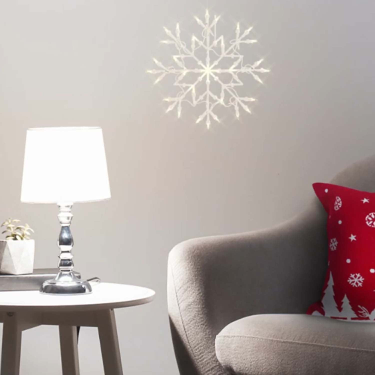 This battery-operated pretty snowflake light looks great in a window or perhaps on a tree. There is a small hole in the top of the snowflake for you to thread a wire or hang on a small nail etc., or could be simply stood up on a fireplace to create a beautiful Christmas centerpiece. With non-replaceable bulbs. Product dimensions: 33 x 33 x 1.5cm.