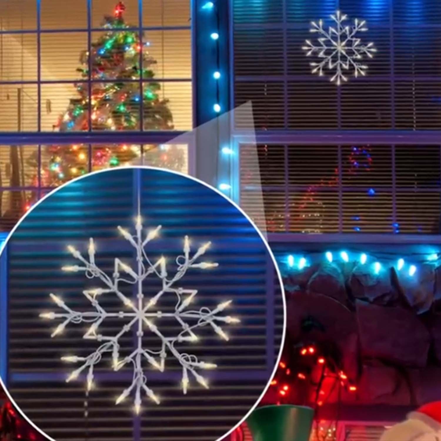 White Snowflake Silhouette Christmas Window Fairy Light Ornament