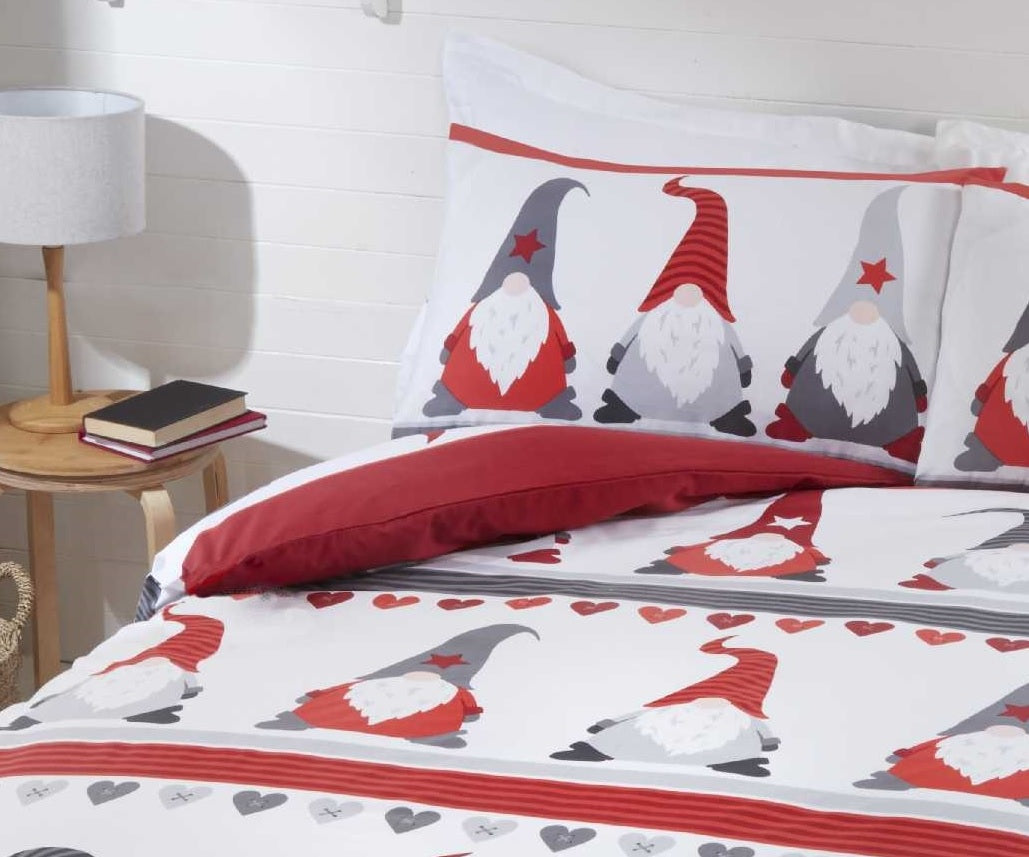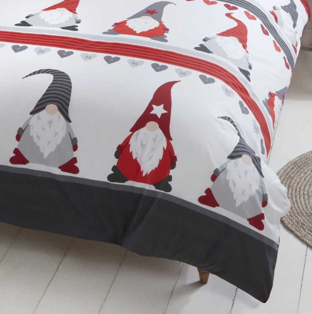Xmax Festive Gonks Duvet Cover Set, Red & Grey, Single