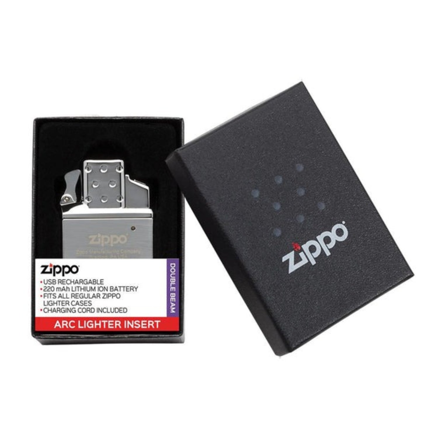 Take your personal adaptation process one step further with the choice of use. Two powerful plasma beams go to ignition on this mission. The dual jet insert provides a wind-resistant flame source that is easily rechargeable and is stamped with the best warranty in its class. Zippo's new lighter insert collection, including this rechargeable arc option, is designed to fit perfectly into any standard Zippo lighter case. Comes in a gift box.
